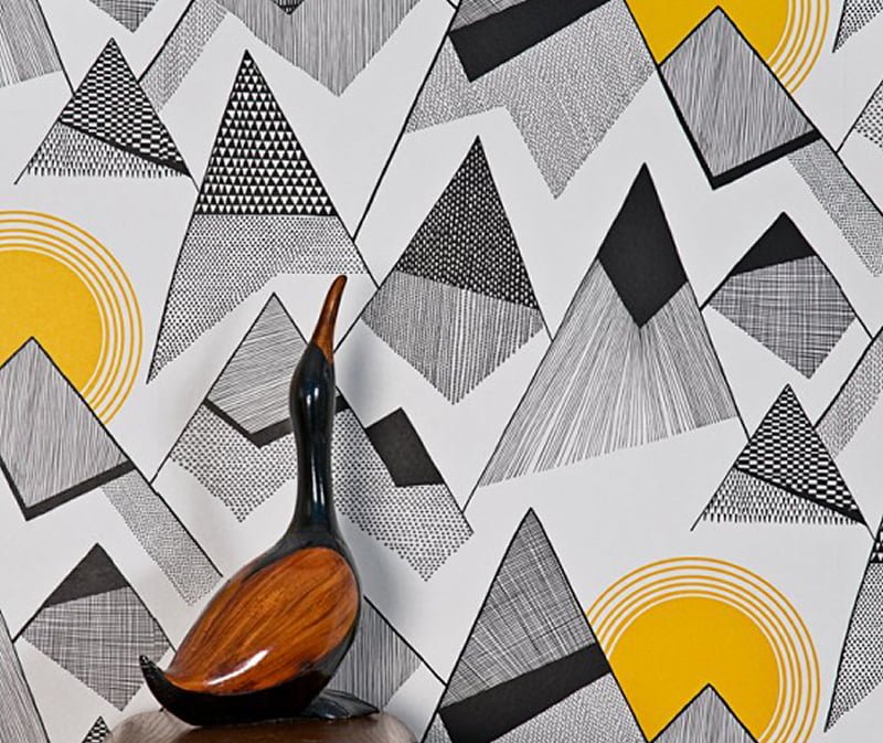 The Mountains design above in classic grey and yellow is one of my favourite. All the designs come in a choice of colourways – all of which are delicious, making choosing just one extremely hard – and you can order samples of wallpapers and fabrics for a very small fee for you to match at home.
