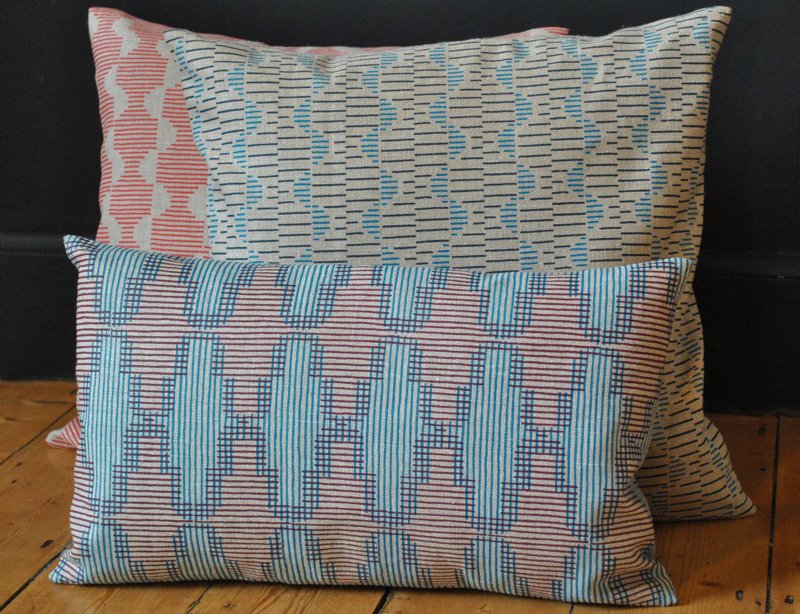 Above: Linen cushion in Hoof Sky Blue and below Hoof linen fabric by the yard. I love the way the design changes when viewed horizontally or vertically (at least it does to my eyes!). All the designs are hand screen-printed on to beautiful, heavy weight Belgian flax linen using water based pigments.