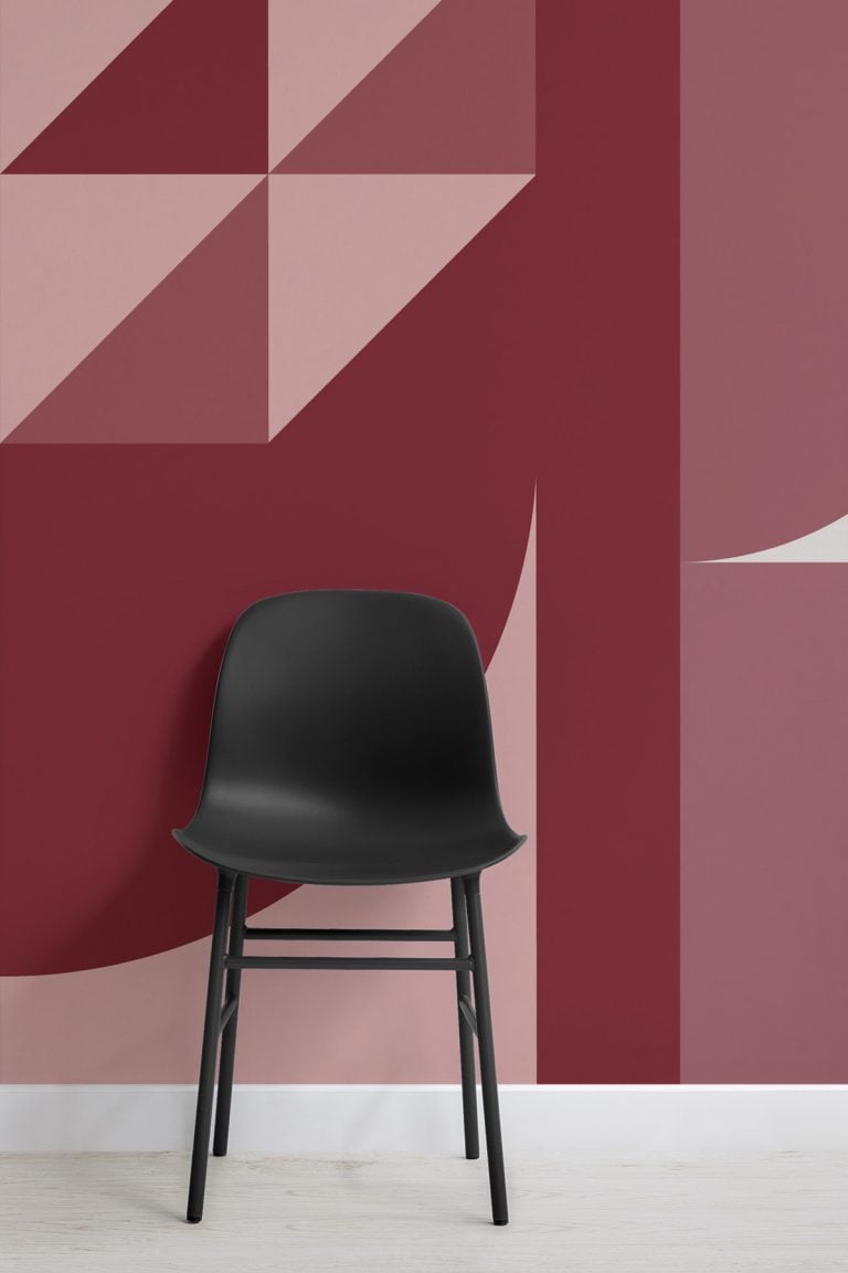 The six mural designs feature the graphic, asymmetric shapes of original Bauhaus exhibition posters, with their bold overlapping elements rendered on a large scale to cover an entire wall. (Don’t worry, the wallpaper actually comes in panels on a roll, similar to normal wallpaper. So you’re not trying to paste up an enormous sheet in one go).